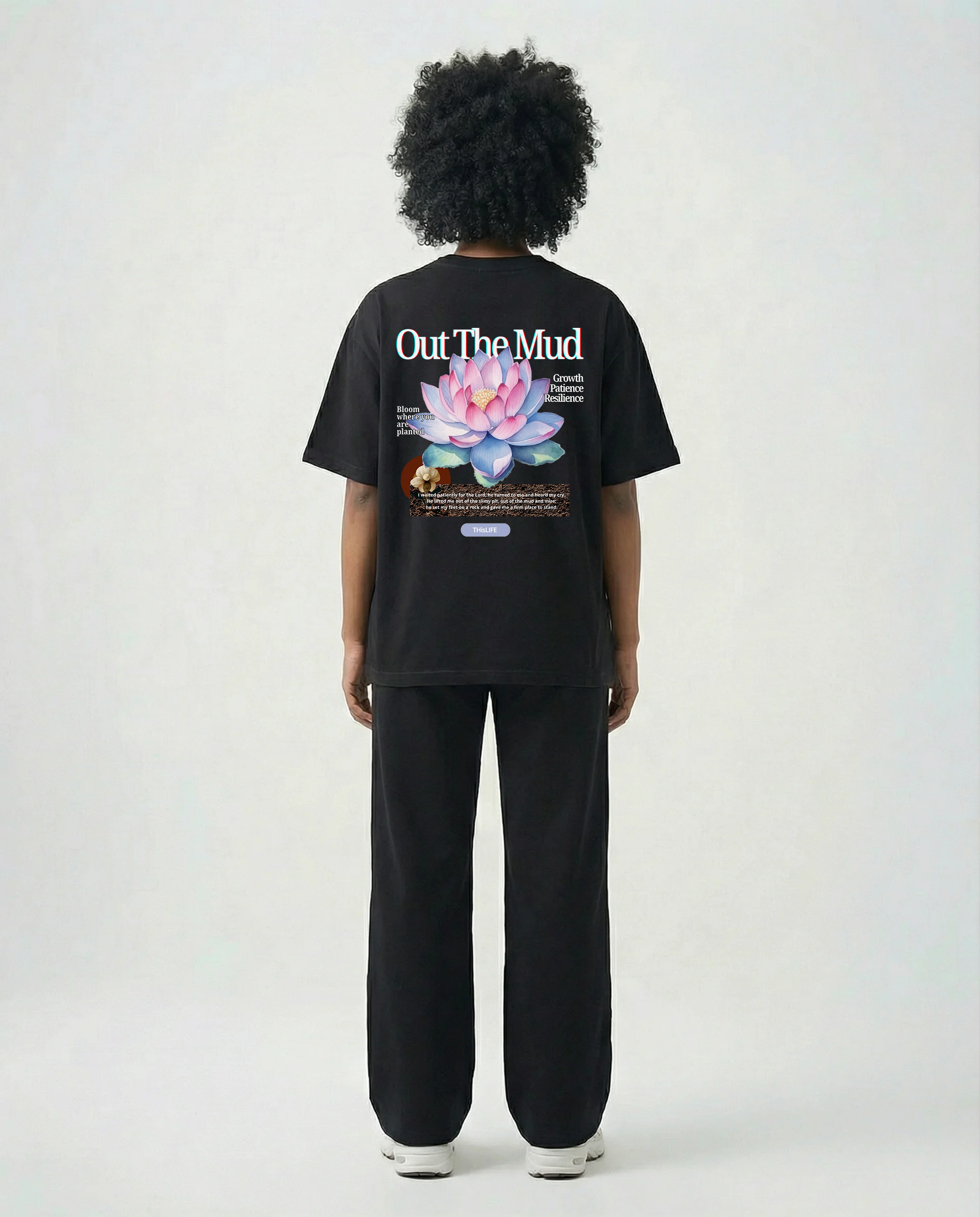 This was Inspired by one of my favorite scriptures (Psalms 40: 1-2) and the lotus flower, which can only grow through the mud.